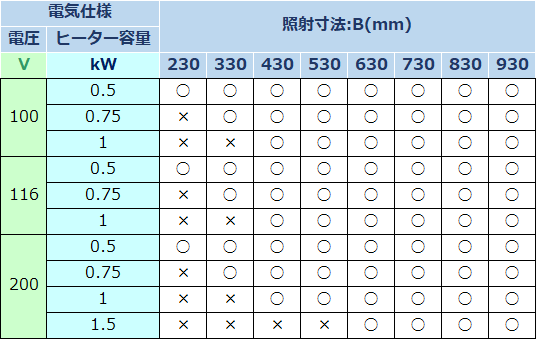 照射寸法950mm以上は特注品の為、お問い合わせください。