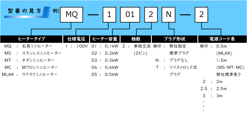 石英・ステンレス・チタン・Mフロンミニヒーター