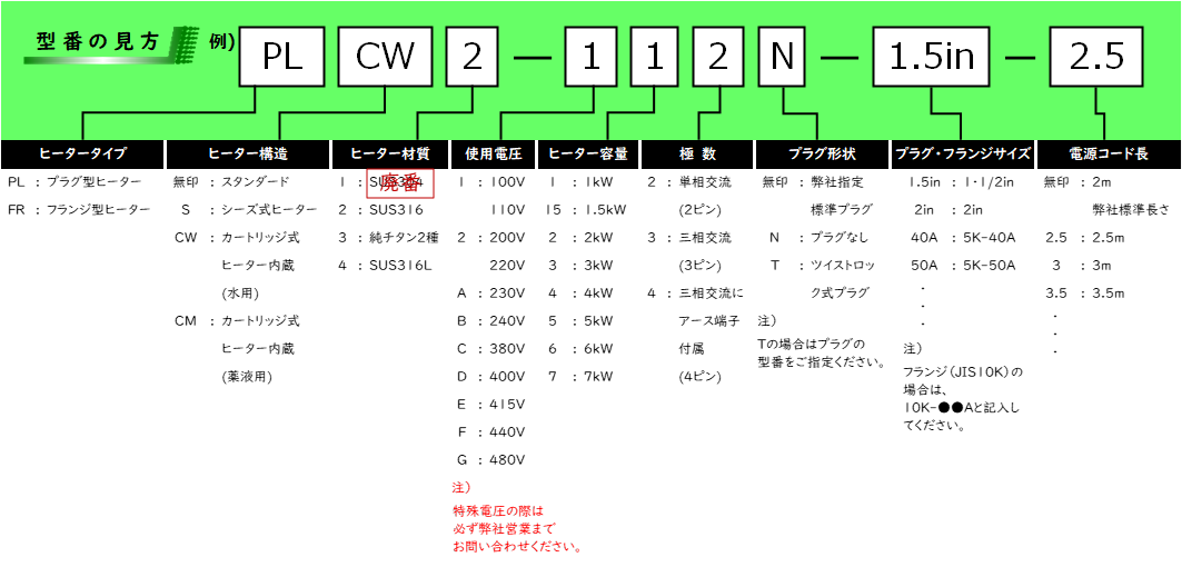 またヒーターの選び方の対応マトリックス表も参考にしてください。