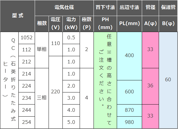 ※上記表は、あくまでも保護管の耐熱温度です。製品の使用温度以下でご使用ください。